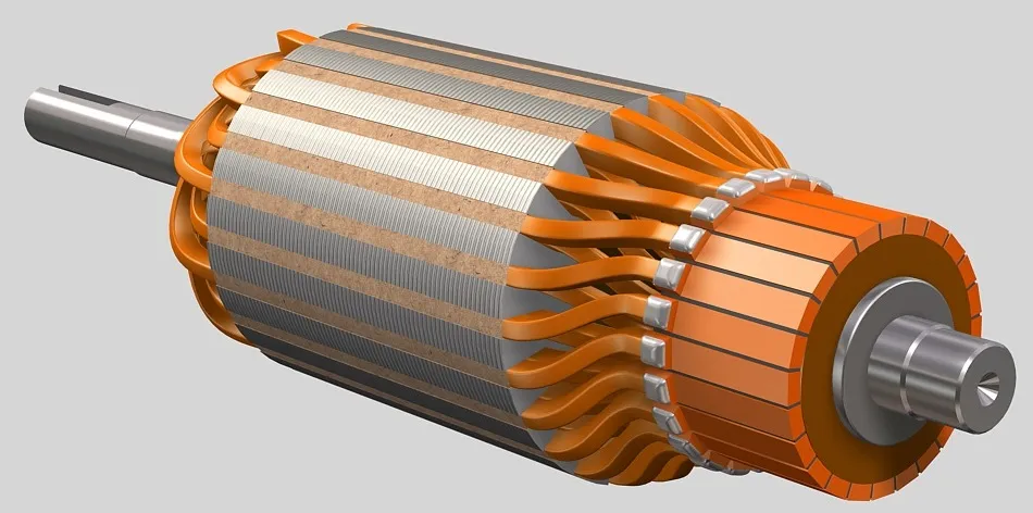 • 3. Корпус двигателя изготавливают из чугуна. Этот металл хорошо зарекомендовал себя при эксплуатации в экстремальных условиях. Он обладает оптимальным значением износостойкости. Чтобы улучшить корпус, инженеры разрабатывают конструкцию с ребрами, позволяющими соблюдать правильный баланс температур при эксплуатации агрегата. Полюсы и якорь монтируют в корпус. Они нужны для формирования индуктора.